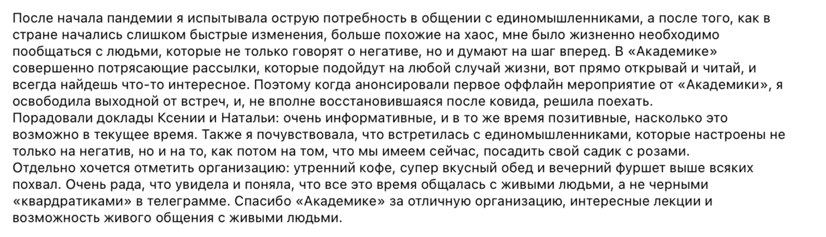 Приглашаем вас ответить на эти вопросы вместе с нами и делимся отзывами участников предыдущей встречи: